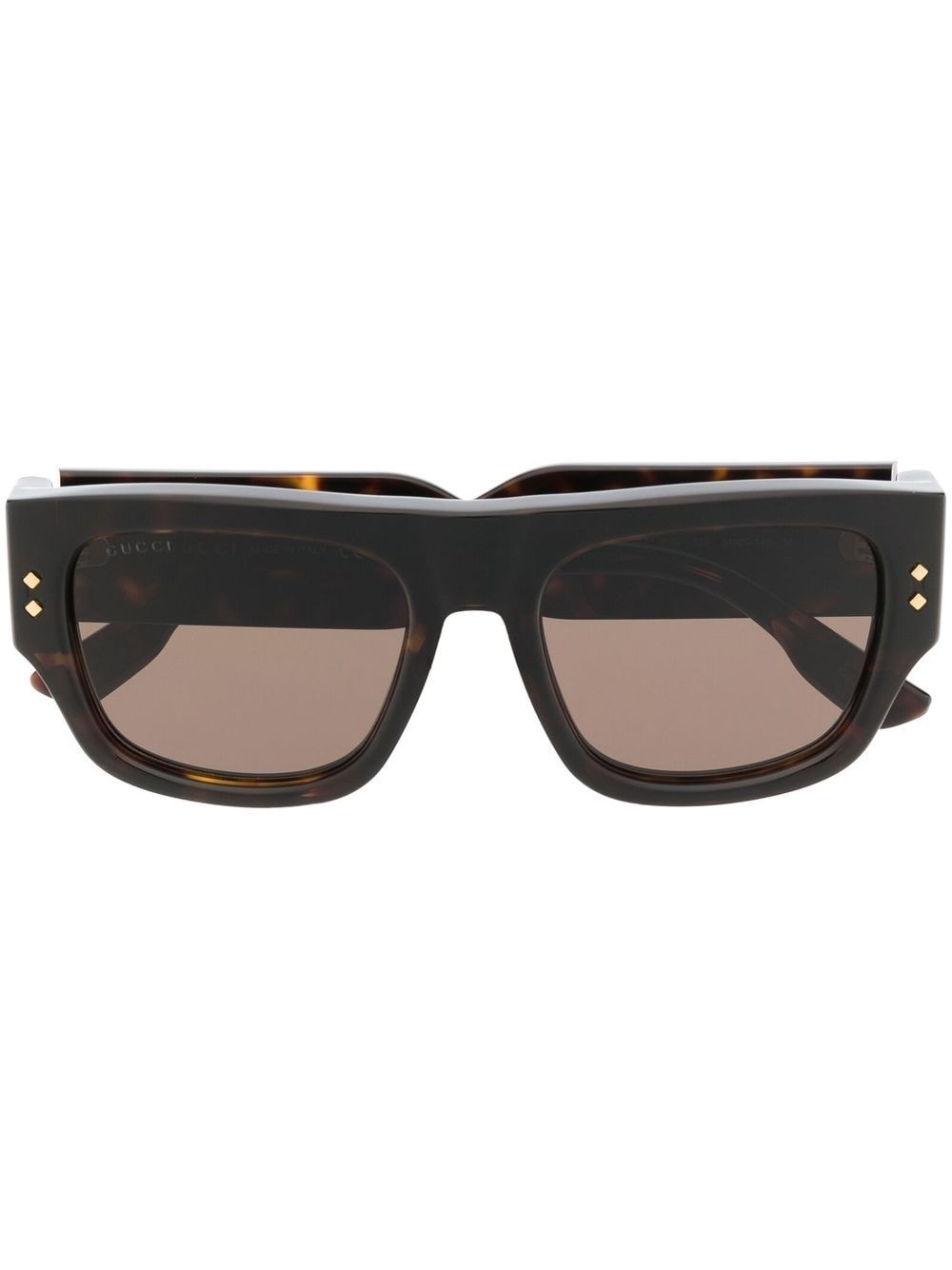 GG1262S square-frame sunglasses Highlights - Brown - Acetate - Tortoiseshell effect - Gold-tone logo lettering - Square frame - Brown tinted lenses - Curved tips - These glasses come with a protective case. Made in Italy Composition Acetate 100% SIZE & FIT Measurement Arm Length 5.7 in(14.5 cm) Bridge Width 0.78 in(2 cm) Lens Diameter 2.12 in(5.4 cm) Total Width 5.7 in(14.5 cm)