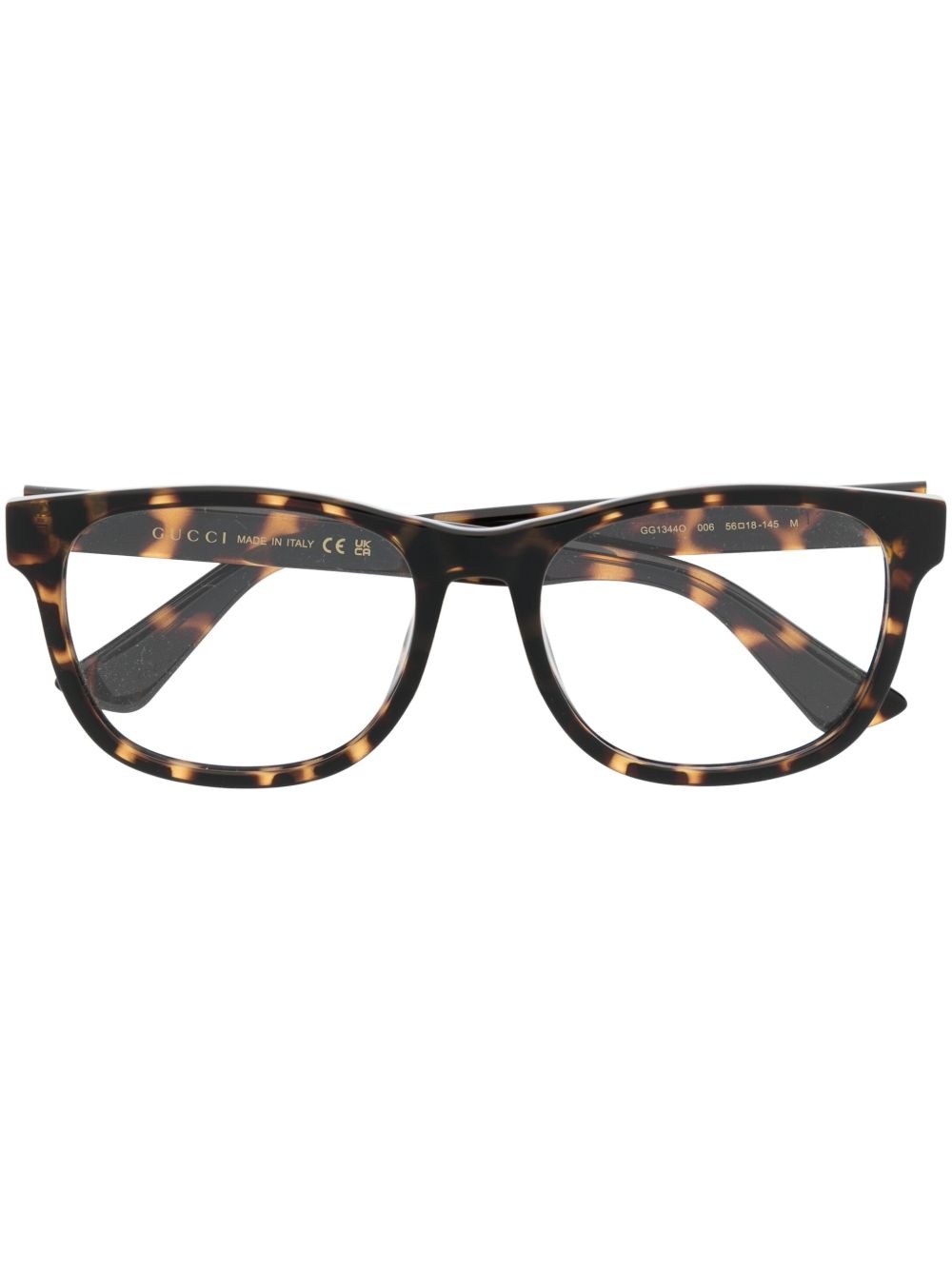 GG1344O glasses Highlights - Havana brown - Tortoiseshell effect - Gold-tone logo lettering - Square frame - Clear lenses - Straight arms - Curved tips - These glasses come with a protective case. - All glasses from farfetch are sold as non-prescription frames. Made in Italy Composition Acetate 100% SIZE & FIT Measurement Total Width 5.51 in(14 cm) Lens Diameter 2.08 in(5.3 cm) Bridge Width 0.7 in(1.8 cm) Arm Length 5.7 in(14.5 cm)