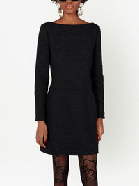 glittered tweed dress black wool-silk blend tweed glitter detailing crew neck rear zip fastening long sleeves straight hem Made in Italy Composition Lining: Acetate 75%, Silk 25% Outer: Wool 85%, Polyamide 15% Washing instructions Dry Clean Only