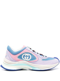 Run lace-up sneakers These Gucci Run sneakers are crafted in a streamlined style and feature the iconic interlocking G motif to the side in a technical printed design. This suede iteration of the model also boasts a logo print to the rear for a branded touch to the sporty silhouette. Highlights - Lilac purple/blue/bubblegum pink - Suede - Colour-block panelled design - Mesh panelling - Round toe - Logo-embroidered tongue - Signature interlocking g logo - Logo print to the rear - Branded insole - Flat rubber sole - Front lace-up fastening - Women's gucci sneakers fit large. for the most comfortable fit please select half a size down. Made in Italy Composition Suede 100% SIZE & FIT Measurement HEEL 1.77 in(4.5 cm) Sole height 0.98 in(2.5 cm)