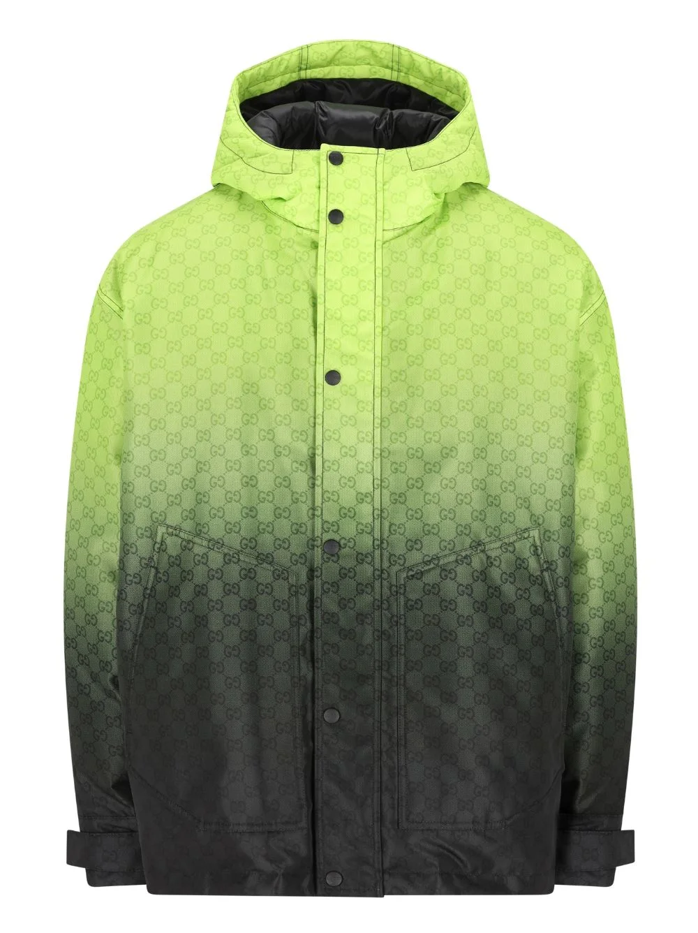 hooded GG-pattern jacket Highlights - Green and black - Gg- pattern print - Front zip-fastening - Snap-button-fastening - Adjustable cuffs - Side pockets Made in Italy Composition Nylon 100% Washing instructions Read Manufacturer Guidelines