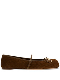Horsebit ballet flats Highlights - Brown - Signature monogram pattern - Square toe - Adjustable ankle strap - Signature horsebit detail - Soft construction - Slip-on design Made in Italy Composition Lining: Calf Leather 100% Outer: Calf Suede 100% Sole: Calf Leather 100%