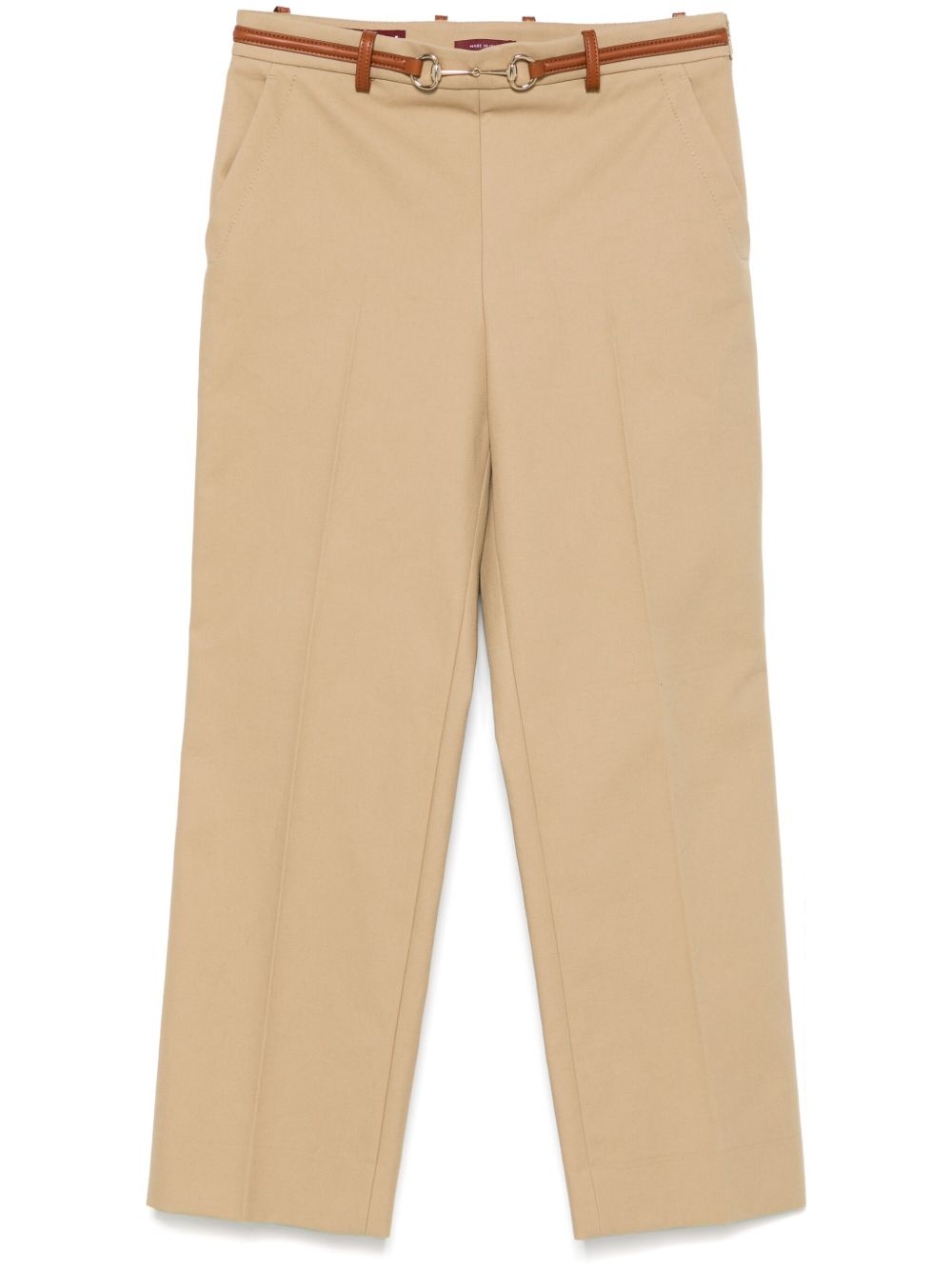 Horsebit-detail cotton trousers Highlights - Beige - Concealed side zip fastening - Belt loops - Two side inset pockets - Two rear welt pockets Made in Italy Composition Outer: CALFSKIN 100%, Cotton 100% Lining: Acetate 75%, Silk 25% SIZE & FIT Model measurements Height 5 ft 10 in(1.78 m) Bust/Chest 33.46 in(85 cm) Hips 36.22 in(92 cm) Waist 23.22 in(59 cm) FittingInformation Designed for a straight-leg fit, these trousers allow for a close fit at the waist and an unrestricted, comfortable fit over the leg Cropped in length Made from a midweight non-stretch fabric