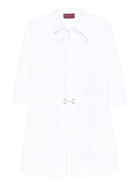 Horsebit-detail poplin dress Highlights - White - Tie neck - Three-quarter sleeves - Signature horsebit detail - Belted waist - A-line skirt Made in Italy Composition Cotton 100% SIZE & FIT Model measurements Height 5 ft 10 in(1.78 m) Bust/Chest 33.85 in(86 cm) Hips 36.61 in(93 cm) Waist 26.77 in(68 cm) Washing instructions Dry Clean Only