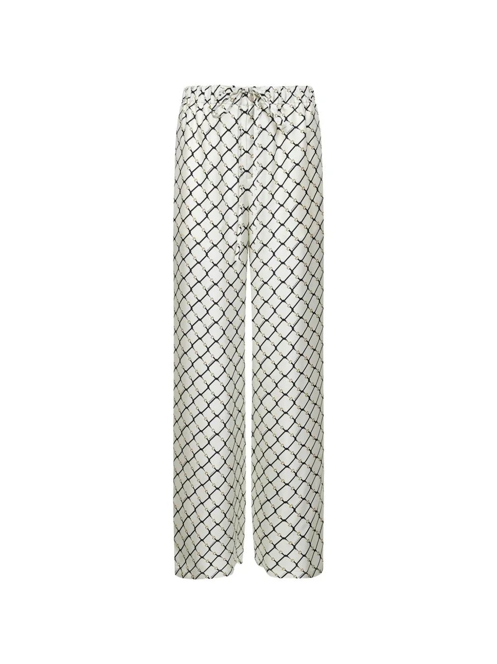 horsebit elasticated print trousers Highlights - White and black - Black horsebit print - Elasticated waistband - Adjustable drawstring - Side in-seam pockets - Wide straight leg Made in Italy Composition Silk 100% Washing instructions Read Manufacturer Guidelines