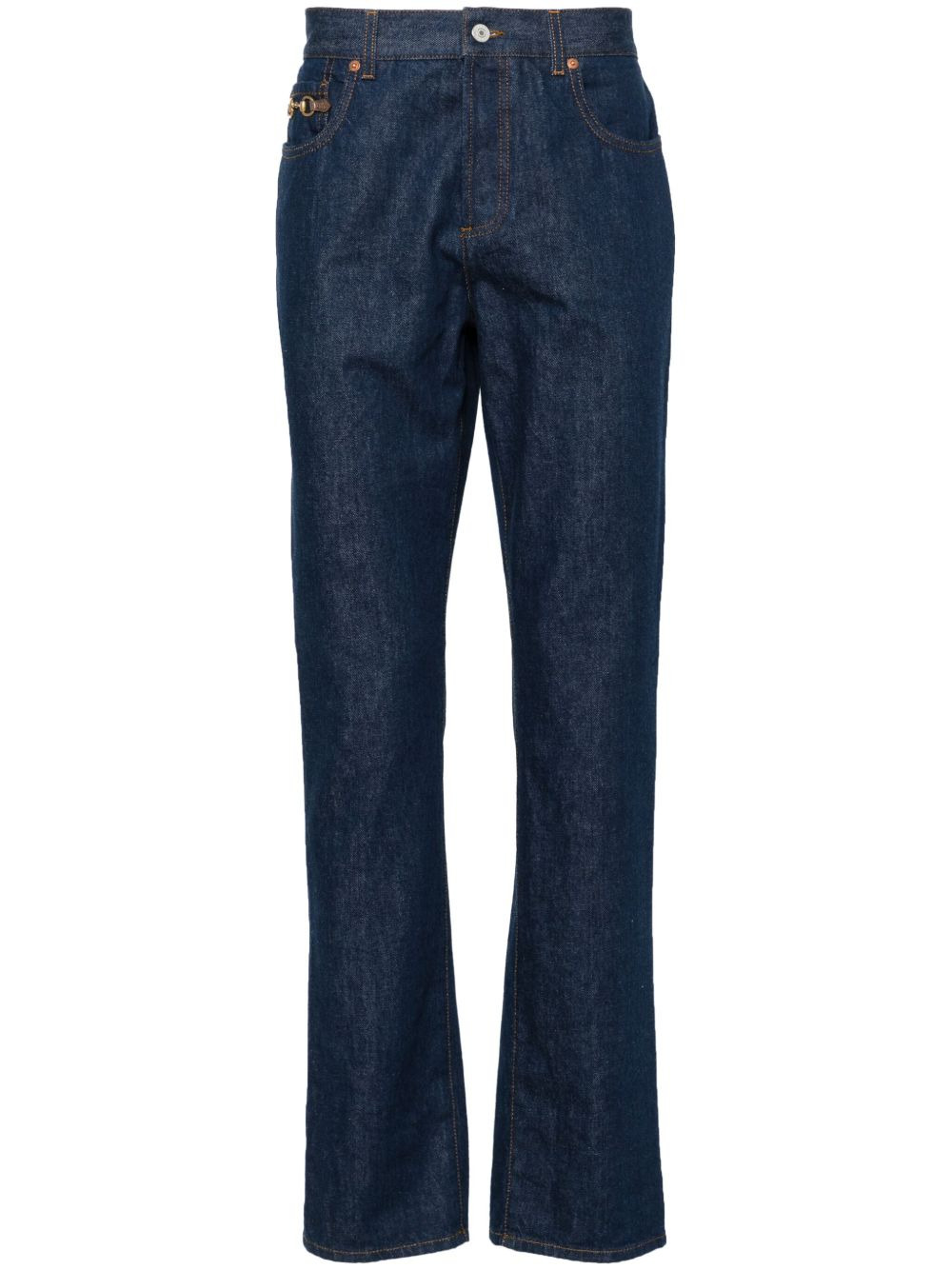 Horsebit-detail jeans Highlights - Indigo blue - Cotton - Denim - Signature horsebit detail - Button fly fastening - Mid-rise - Belt loops - Contrast stitching - Classic five pockets - Logo patch to the rear - Straight leg Made in Italy Composition Lining: Polyester 65%, Cotton 35% Outer: Cotton 100%, Calf Leather 100% SIZE & FIT Model measurements Height 6 ft 1 in(1.86 m) Bust/Chest 36.61 in(93 cm) Hips 37 in(94 cm) Waist 28.74 in(73 cm) FittingInformation Designed with a straight leg, these jeans allow for an unrestricted and comfortable fit over the leg Sturdy and hard-wearing, this denim piece offers no stretch Washing instructions Dry Clean Only