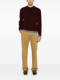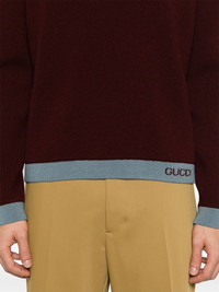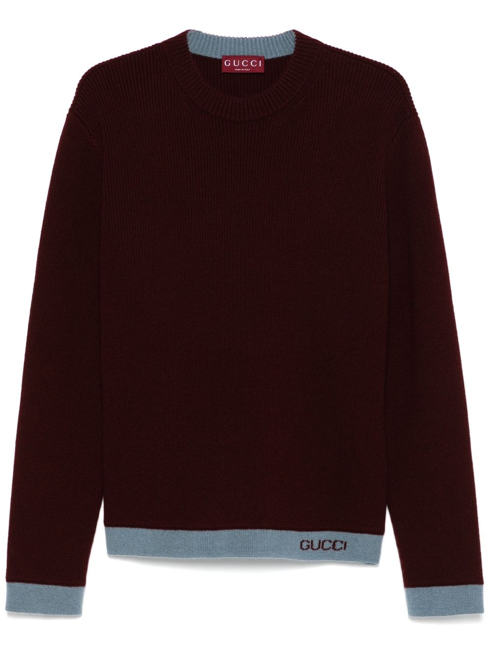 intarsia wool sweater Highlights - Bordeaux red - Crew neck - Long sleeves - Contrasting trim Made in Italy Composition Wool 100% SIZE & FIT Model measurements Height 6 ft 2 in(1.87 m) Bust/Chest 36.41 in(92.5 cm) Hips 35.43 in(90 cm) Waist 29.52 in(75 cm) FittingInformation Designed for a relaxed fit, this piece allows for comfort and movement when worn Made with a midweight knit, this piece offers some stretch