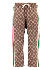 Interlocking G cropped track pants Cut for a straight leg, these track pants from Gucci's AW21 collection boast an Interlocking G print all over and a Web strap detailing at the sides, where they can be adjusted with snap buttons. Inspired by sportswear silhouettes, they pay homage to the house's signature motifs. Highlights - Tobacco brown/multicolour - Technical jersey - Signature gg supreme print - Signature web detailing - Side stripe detailing - Snap-button fastening at the side - Elasticated drawstring waistband - Straight leg - Cropped leg Made in Italy Composition Polyester 55%, Cotton 45% SIZE & FIT Measurement FRONT RISE 11.81 in(30 cm) HIPS 38.58 in(98 cm) WAIST 24.4 in(62 cm) Washing instructions Dry Clean Only