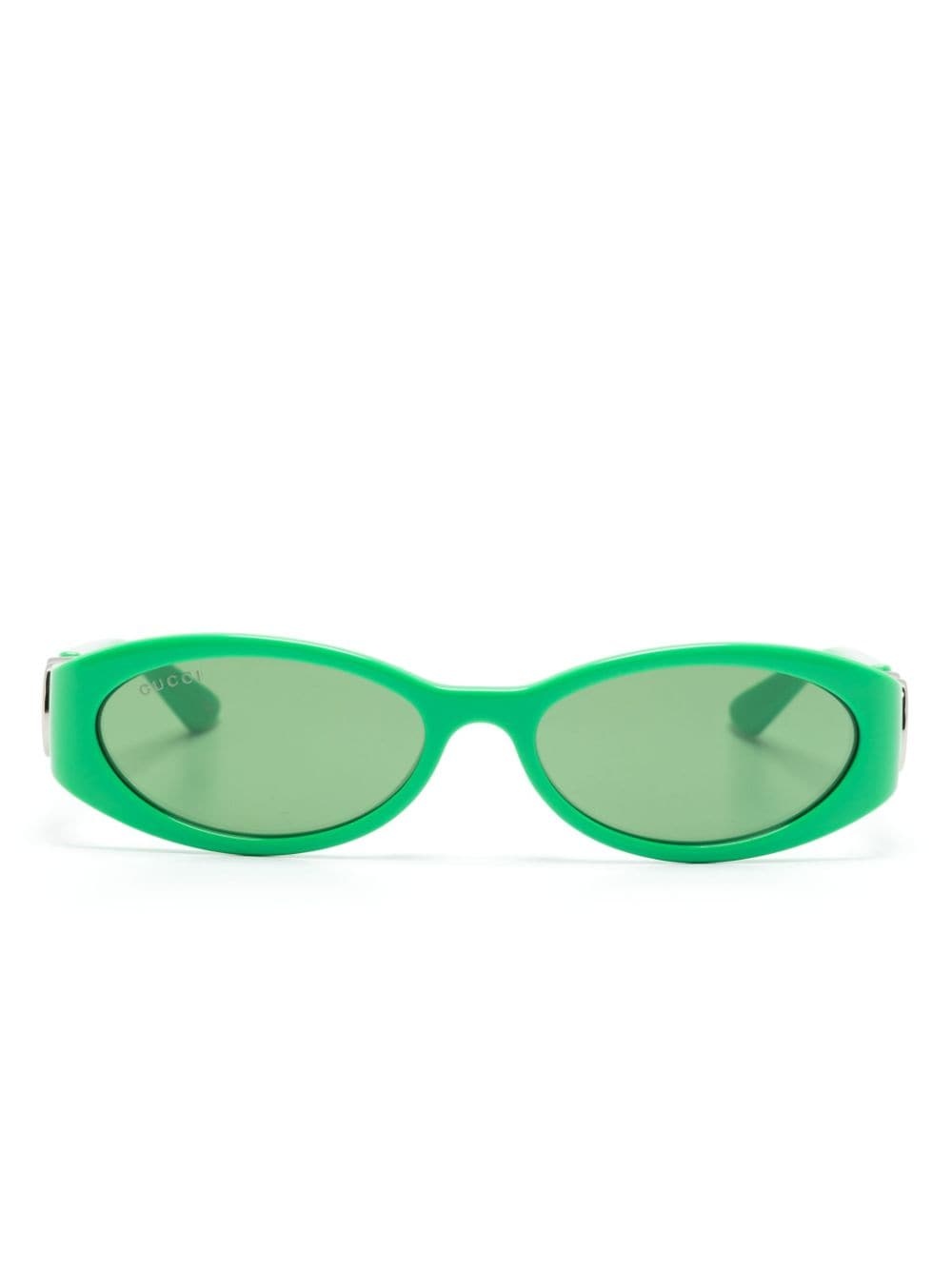Interlocking G oval-frame sunglasses Highlights - Parakeet green - Acetate - Oval frame - Green tinted lenses - Uv-protective lenses - Logo lens decal - Signature interlocking g logo plaque arm - Silver-tone hardware - Straight arms with curved tips - These glasses come with a protective case. Made in Italy Composition Outer: Acetate 100% SIZE & FIT Measurement Arm Length 5.31 in(13.5 cm) Bridge Width 0.62 in(1.6 cm) Lens Diameter 2.12 in(5.4 cm)