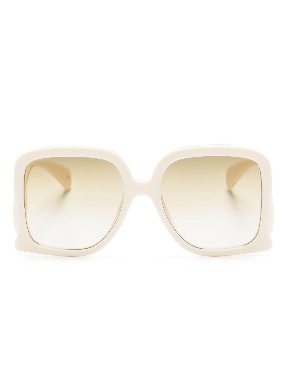 Interlocking-G oversize-frame sunglasses Highlights - Ivory white - Acetate - Oversize frame - Gradient lenses - Uv protection - Signature interlocking g logo - Sculpted arms - Curved tips - These glasses come with a protective case. Made in United States Composition Acetate 100% SIZE & FIT Measurement Arm Length 5.51 in(14 cm) Bridge Width 0.74 in(1.9 cm) Lens Diameter 2.28 in(5.8 cm)