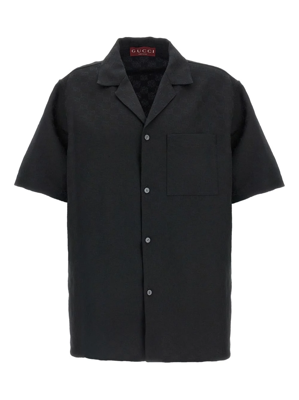 jacquard bowling shirt Highlights - Black - Linen blend - Gg motif - Button closure - Chest patch pocket Made in Italy Composition Linen/Flax 68%, Polyester 32% Washing instructions Read Manufacturer Guidelines