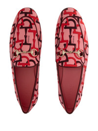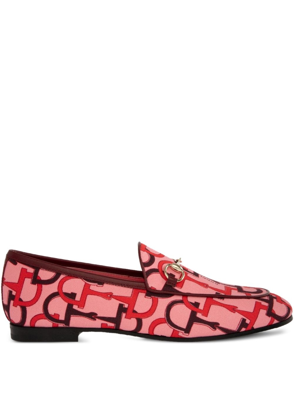 Jordaan loafers Highlights - Pink - Repeating logo pattern - Gold-tone horsebit detail - Round toe - Contrasting heel trim Made in Italy Composition Lining: Calf Leather 100% Outer: Fabric 100% Sole: Calf Leather 100%