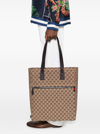 large GG tote bag Highlights - Sand beige - Top zip fastening - Flat top handles - Front zip-fastening pocket - Internal zip-fastening pocket - This piece comes complete with a protective dust bag. Made in Italy Composition Outer: Calf Leather 100%, Canvas 100% SIZE & FIT Model measurements Height 6 ft 2 in(1.88 m) Bust/Chest 36.61 in(93 cm) Hips 35.82 in(91 cm) Waist 27.95 in(71 cm) Measurement DEPTH 4.72 in(12 cm) HANDLE 12.59 in(32 cm) HEIGHT 15.74 in(40 cm) WIDTH 13.38 in(34 cm)