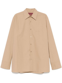 logo-embossed cotton shirt Highlights - Beige - Front button fastening - Classic collar - Buttoned cuffs - Box-pleat detail Made in Italy Composition Cotton 100% SIZE & FIT Model measurements Height 6 ft 2 in(1.87 m) Bust/Chest 38.18 in(97 cm) Hips 36.61 in(93 cm) Waist 29.13 in(74 cm) FittingInformation Designed to be unstructured, offering a loose fit throughout Made from a midweight non-stretch fabric