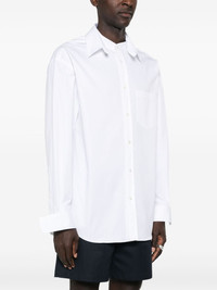 logo-embossed cotton shirt Highlights - White - Cotton - Poplin texture - Band collar - Detachable classic collar - Drop shoulder - Long sleeves with buttoned cuffs - Embossed logo to the cuff - Chest patch pocket - Rear pleat detailing - Curved hem - Front button placket Made in Italy Composition Cotton 100% SIZE & FIT Model measurements Height 6 ft 2 in(1.87 m) Bust/Chest 36.41 in(92.5 cm) Hips 37 in(94 cm) Waist 29.52 in(75 cm) FittingInformation Designed to be unstructured, offering a loose fit throughout Made from a midweight non-stretch fabric This piece fits true to size – take your usual size