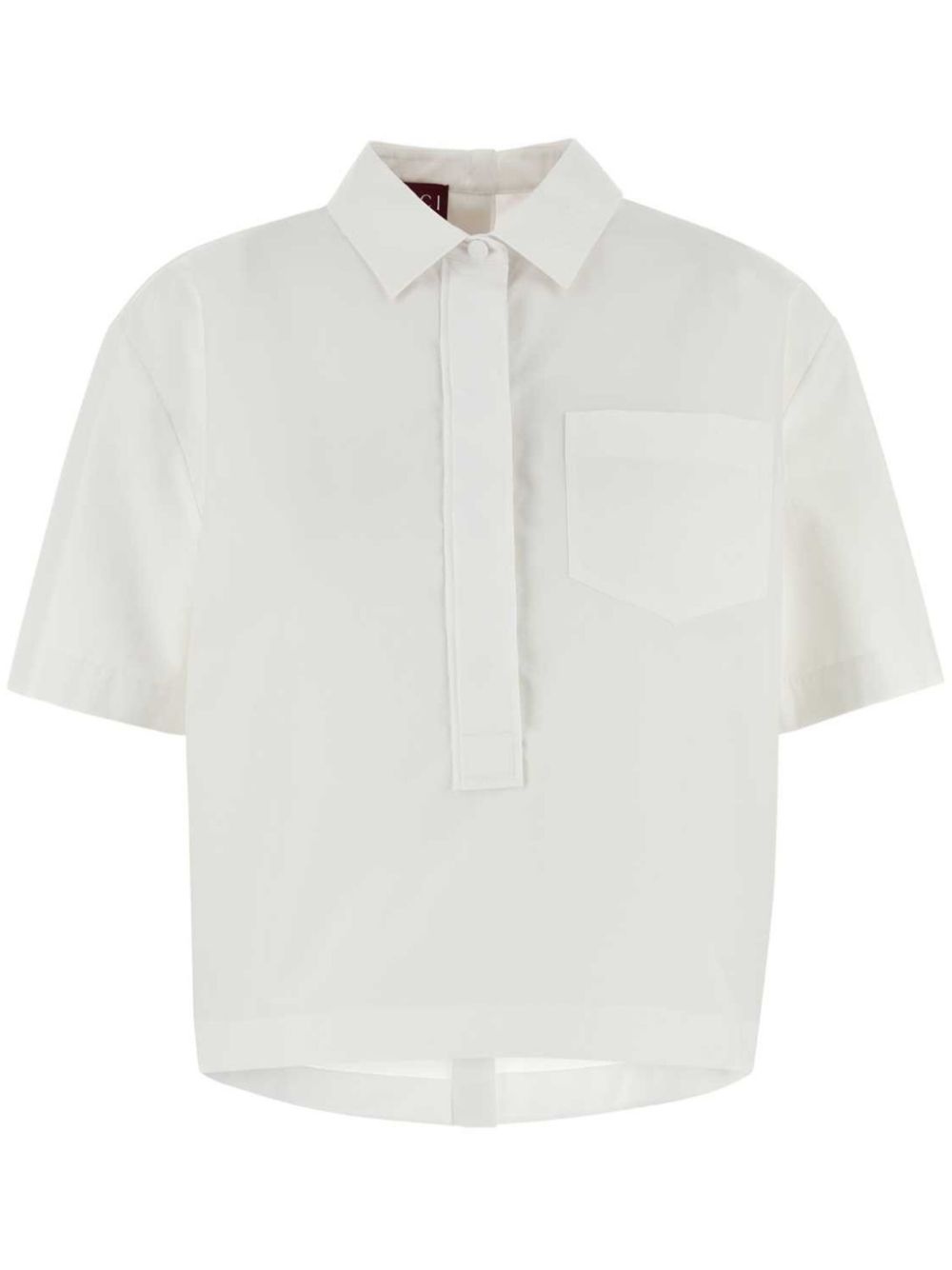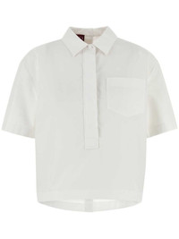 logo-embossed poplin shirt Highlights - White - Short front button fastening - Rear button fastening Made in Italy Composition Cotton 100% SIZE & FIT Measurement CHEST 47.24 in(120 cm) SLEEVE LENGTH 9.64 in(24.5 cm) HIPS 48.81 in(124 cm) LENGTH 23.22 in(59 cm) WAIST 48.03 in(122 cm)