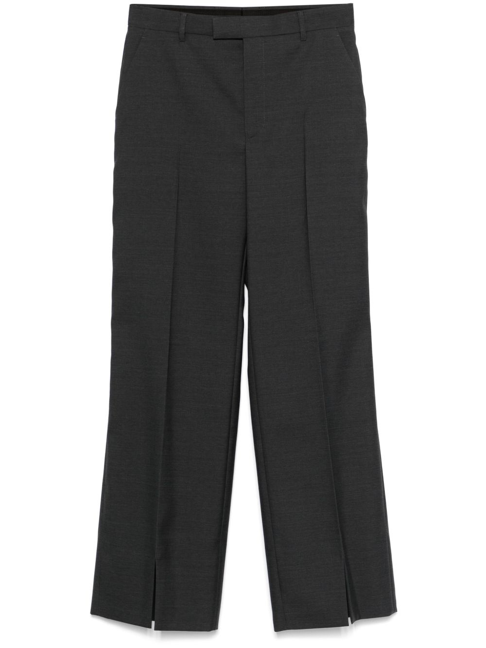 logo-embroidered straight-leg trousers Highlights - Medium grey - Concealed front button, hook and zip fastening - Belt loops - Two side slash pockets - Two rear welt pockets Made in Italy Composition Lining: Viscose 100% Outer: Wool 100% SIZE & FIT Model measurements Height 5 ft 10 in(1.77 m) Bust/Chest 32.28 in(82 cm) Hips 35.03 in(89 cm) Waist 25.19 in(64 cm) FittingInformation Designed with a wide-leg cut, these trousers allow for a close fit at the waist and offer a loose and roomy fit over the leg Made from a midweight non-stretch fabric