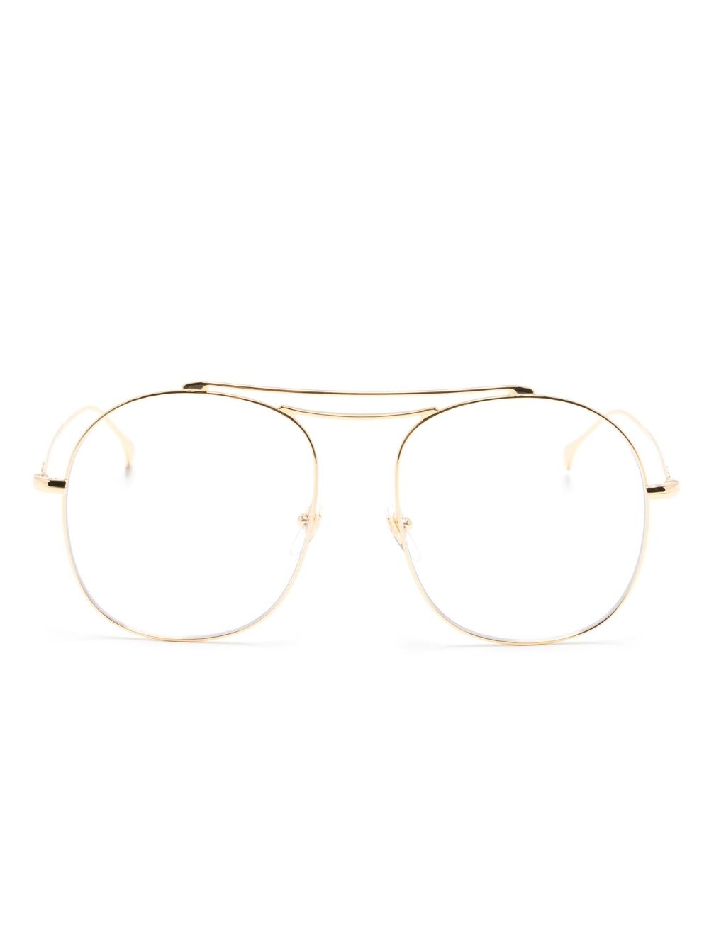 logo-engraved pilot-frame glasses Highlights - Gold-tone - Titanium - Logo-engraved arm - Pilot frame - Clear lenses - Nose pads - Straight arms - Curved tips - All glasses from farfetch are sold as non-prescription frames. - These glasses come with a protective case. Imported Composition Titanium 100% SIZE & FIT Measurement Arm Length 5.7 in(14.5 cm) Bridge Width 0.7 in(1.8 cm) Lens Diameter 2.28 in(5.8 cm) Total Width 5.9 in(15 cm)
