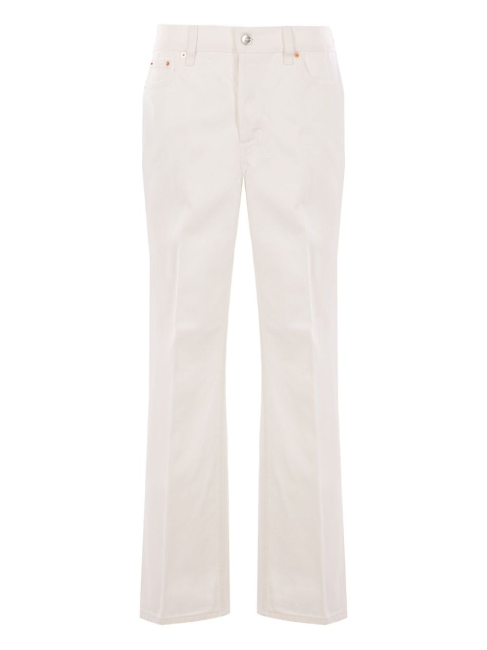 logo-patch jeans Highlights - White - Flared hem - Five pockets - Button fastening - Belt loops - Leather logo patch Made in Italy Composition Fabric 100% Washing instructions Read Manufacturer Guidelines