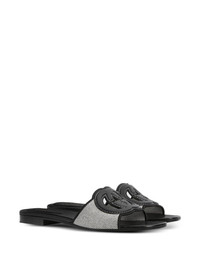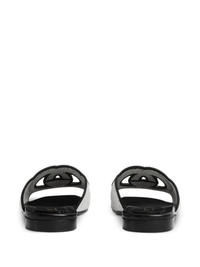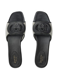 logo-plaque flat sandals Highlights - Black and white - Canvas trim - Leather sole - Flat sole - Interlocking g detail - Open toe Made in Italy Composition Lining: Leather 100% Outer: Leather 100% Sole: Leather 100%