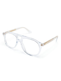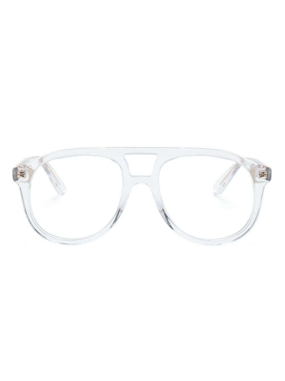 logo-plaque pilot-frame glasses Highlights - Gold-tone - Acetate - Logo plaque - Transparent frame - Pilot frame - Clear lenses - Straight arms - Curved tips - These glasses come with a protective case. - All glasses from farfetch are sold as non-prescription frames. Made in Italy Composition Acetate 100% SIZE & FIT Measurement Arm Length 5.7 in(14.5 cm) Bridge Width 0.74 in(1.9 cm) Lens Diameter 2.12 in(5.4 cm) Total Width 5.59 in(14.2 cm)