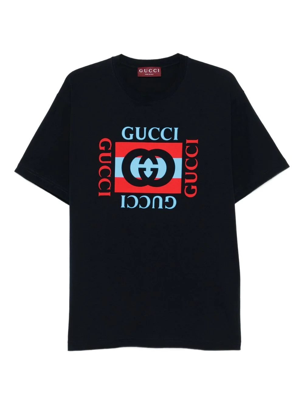 logo-print crewneck T-shirt Highlights - Navy blue - Crew neck - Short sleeves - Red blue graphic - Logo print Made in Italy Composition Cotton 100% SIZE & FIT Model measurements Height 6 ft 2 in(1.87 m) Bust/Chest 37.79 in(96 cm) Hips 37.79 in(96 cm) Waist 30.31 in(77 cm) FittingInformation Designed for a regular fit allowing for a comfortably loose fit throughout the body Made from a midweight non-stretch fabric, this piece offers minimal elasticity when worn Washing instructions Machine Wash