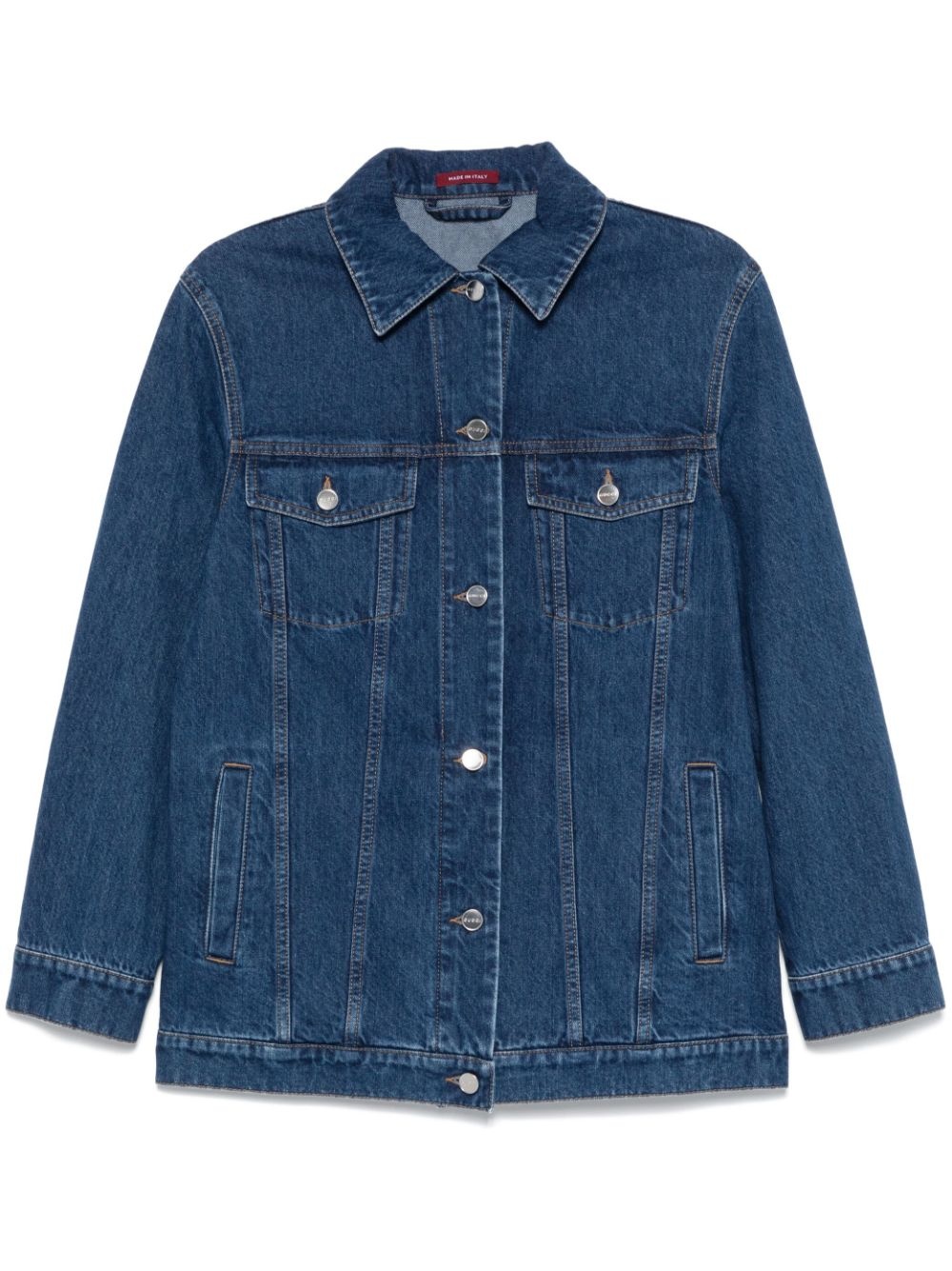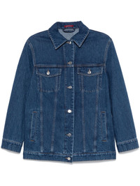 logo-print jacket Highlights - Indigo blue - Cotton blend - Washed denim - Logo print to the rear - Front button fastening - Contrast stitching - Classic collar - Long sleeves with buttoned cuffs - Two chest flap pockets - Two side welt pockets - Waist tabs - Logo patch to the rear - Straight hem Made In Italy Composition Outer: Cotton 98%, Other fibres 2% Lining: Cotton 100% SIZE & FIT Model measurements Height 5 ft 9 in(1.75 m) Bust/Chest 31.88 in(81 cm) Hips 34.64 in(88 cm) Waist 24.01 in(61 cm) FittingInformation Designed to be unstructured, offering a loose fit throughout Sturdy and hard-wearing, this denim piece offers no stretch