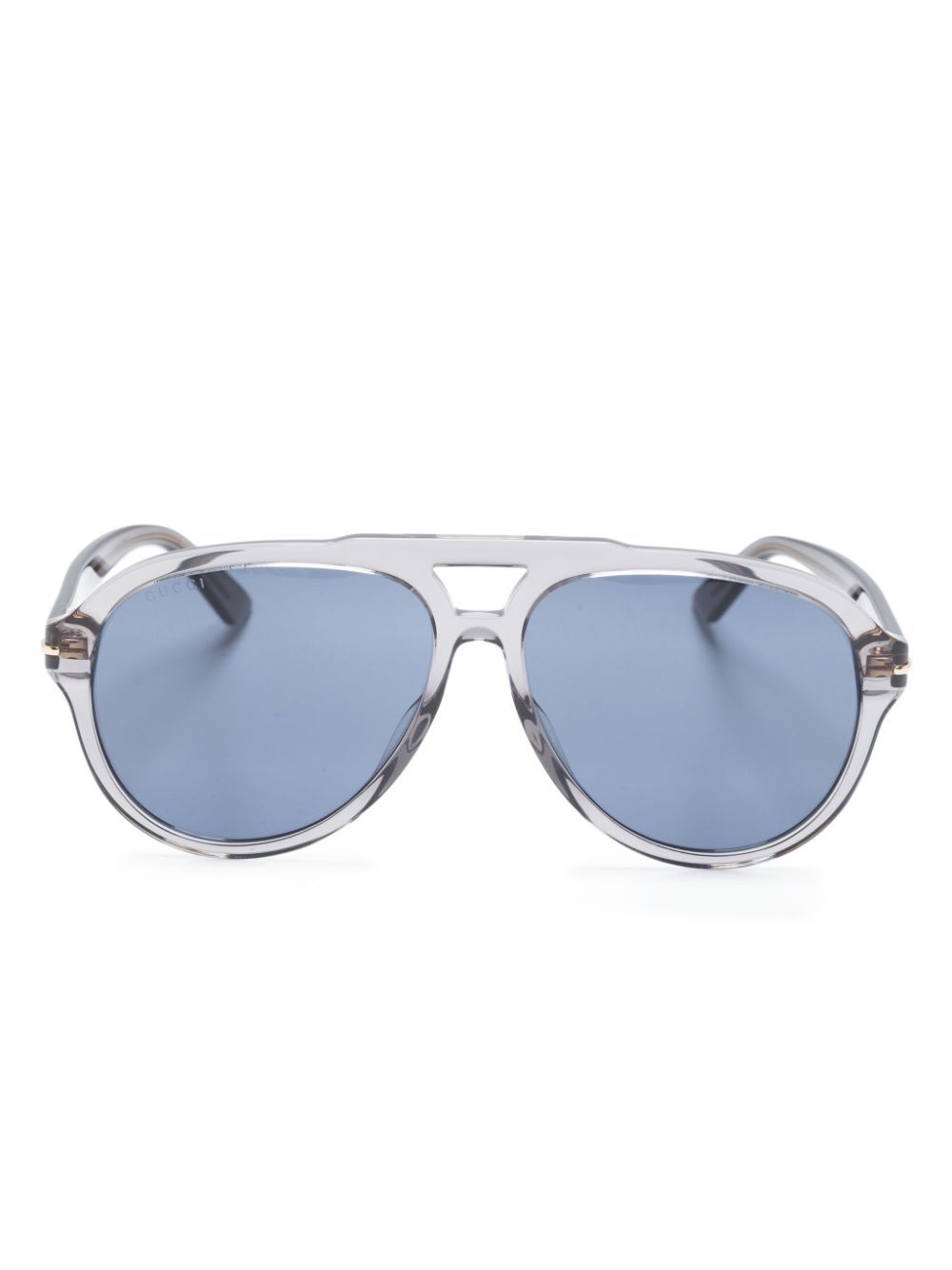 logo-print oversize-frame sunglasses Highlights - Light grey - Recycled acetate - Oversize frame - Blue tinted lenses - Logo print at the arm - Straight arms - Curved tips - These glasses come with a protective case. Made in Italy Composition Recycled Acetate 100% SIZE & FIT Measurement Arm Length 5.7 in(14.5 cm) Bridge Width 0.55 in(1.4 cm) Lens Diameter 2.28 in(5.8 cm) Total Width 5.7 in(14.5 cm)