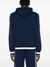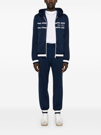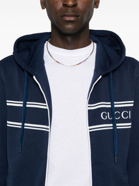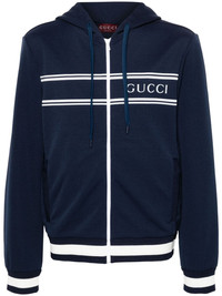 logo-print zip-up hoodie Highlights - Navy blue - Cotton - Pique weave - Slouchy drawstring hood - Long sleeves - Striped detailing to the front - Logo print at the chest - Two side welt pockets - Striped ribbed cuffs and hem - Front zip fastening Made in Italy Composition Outer: Polyester 100% Lining: Cotton 100% SIZE & FIT Model measurements Height 6 ft 2 in(1.87 m) Bust/Chest 36.41 in(92.5 cm) Hips 37 in(94 cm) Waist 29.52 in(75 cm) FittingInformation Designed for a relaxed fit, this piece allows for comfort and movement when worn The ribbed hem offers a close, comfortable fit Made from a midweight non-stretch fabric, this piece offers minimal elasticity when worn This piece fits true to size – take your usual size