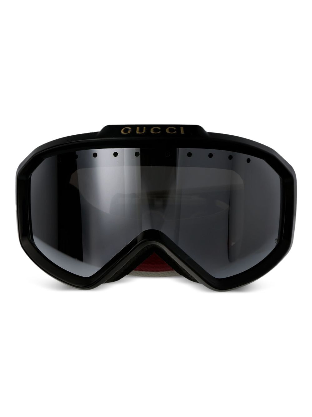 mask-shaped sunglasses These Gucci Eyewear sunglasses are shaped for a dramatically oversized silhouette. With a large tinted lense, they feature all-over branded detailing for a signature house style. Made in Italy Composition Acetate 100% SIZE & FIT Measurement Total Width 7.28 in(18.5 cm)