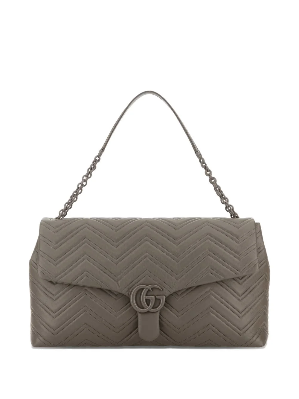 maxi GG Marmont-motif shoulder bag Highlights - Grey - Chevron design - Chain shoulder strap - Gg logo detail Made in Italy Composition Outer: Calf Leather 100% SIZE & FIT Measurement DEPTH 3.54 in(9 cm) HEIGHT 9.84 in(25 cm) WIDTH 18.5 in(47 cm)