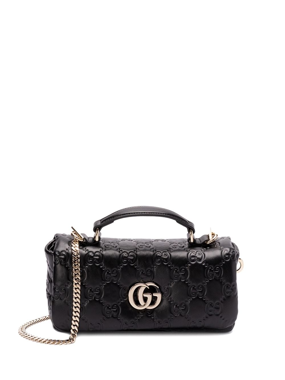 mini GG Milano tote bag Highlights - Black - Lambskin - Signature interlocking g debossed monogram pattern - Single top handle - Detachable chain-link shoulder strap - Signature interlocking g logo - Foldover top with press-stud fastening - Main compartment - Internal zip-fastening pocket - Internal slip pocket - This piece comes complete with a protective dust bag. Made in Italy Composition Lining: Lamb Skin 100% Outer: Leather 100% SIZE & FIT Measurement DEPTH 1.77 in(4.5 cm) HANDLE 2.36 in(6 cm) HEIGHT 4.72 in(12 cm) STRAP 19.68 in(50 cm) WIDTH 8.26 in(21 cm)