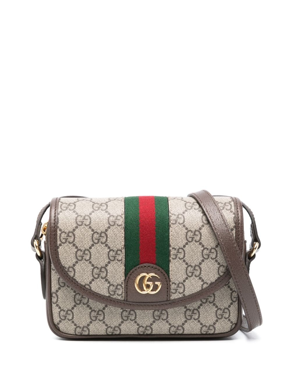 Ophidia GG mini bag Hailing from Gucci's Ophida family, this shoulder bag boasts plenty of hallmark design details – from the classic GG Supreme canvas composition and signature web stripe trim to the gold-tone double G logo. Highlights - Beige - Calf leather - Grained texture - Signature gg supreme print - Signature web-stripe trim - Signature double g logo - Gold-tone hardware - Foldover top with magnetic fastening - Adjustable shoulder strap - Top zip fastening - Front zip-fastening pocket - Main compartment - Internal zip-fastening pocket - Canvas lining - This piece comes complete with a protective dust bag. Made in Italy Composition Outer: Canvas 100%, Calf Leather 100% Lining: Cotton 100% SIZE & FIT Model measurements Height 5 ft 11 in(1.8 m) Bust/Chest 33.07 in(84 cm) Hips 37.4 in(95 cm) Waist 25.19 in(64 cm) Measurement DEPTH 1.96 in(5 cm) HEIGHT 5.11 in(13 cm) STRAP 46.45 in(118 cm) WIDTH 7.48 in(19 cm)