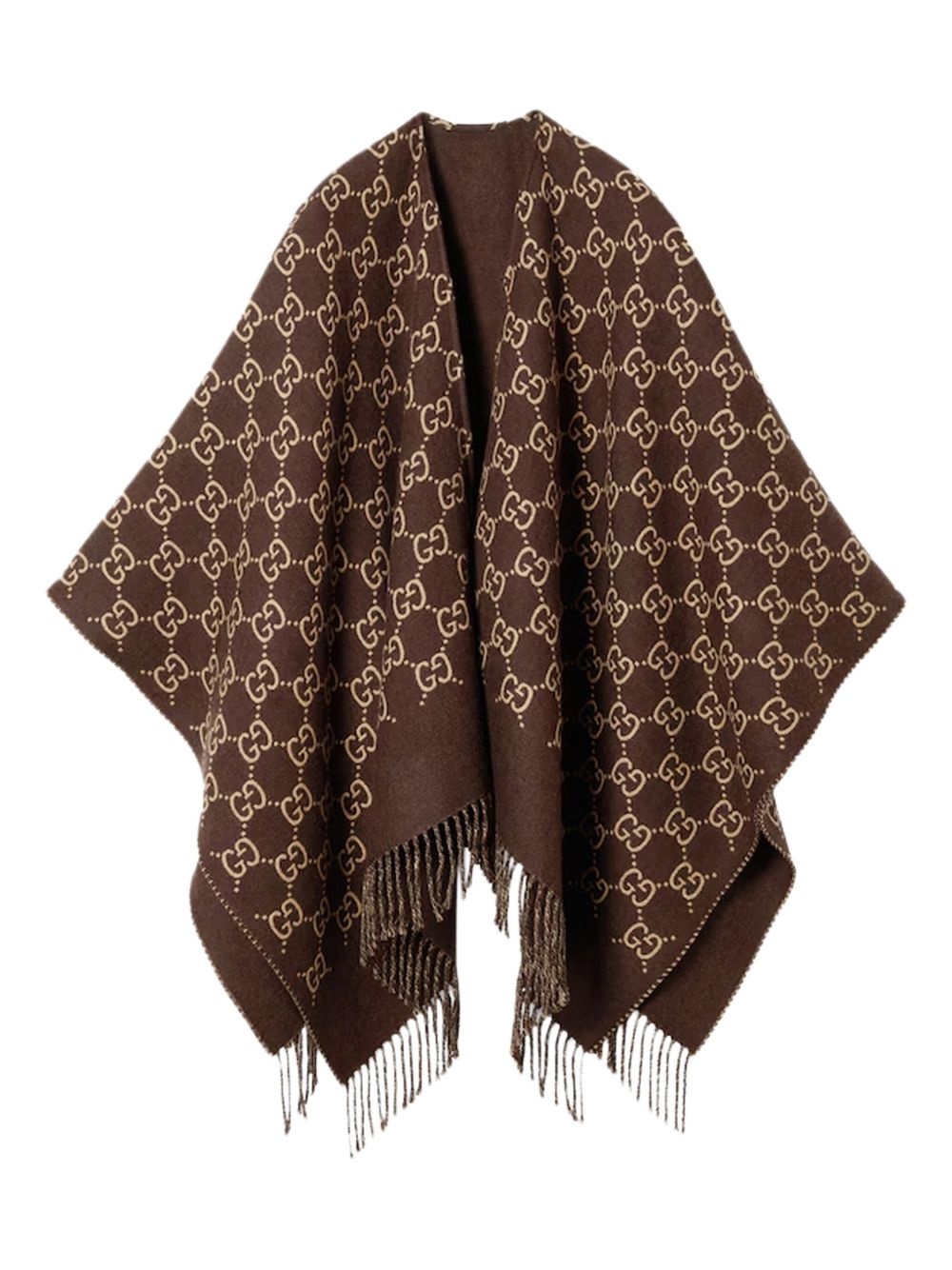 monogram-pattern cape Highlights - Brown - All-over logo pattern - Fringe detailing - Cape design Made in Italy Composition Wool 100% Washing instructions Read Manufacturer Guidelines