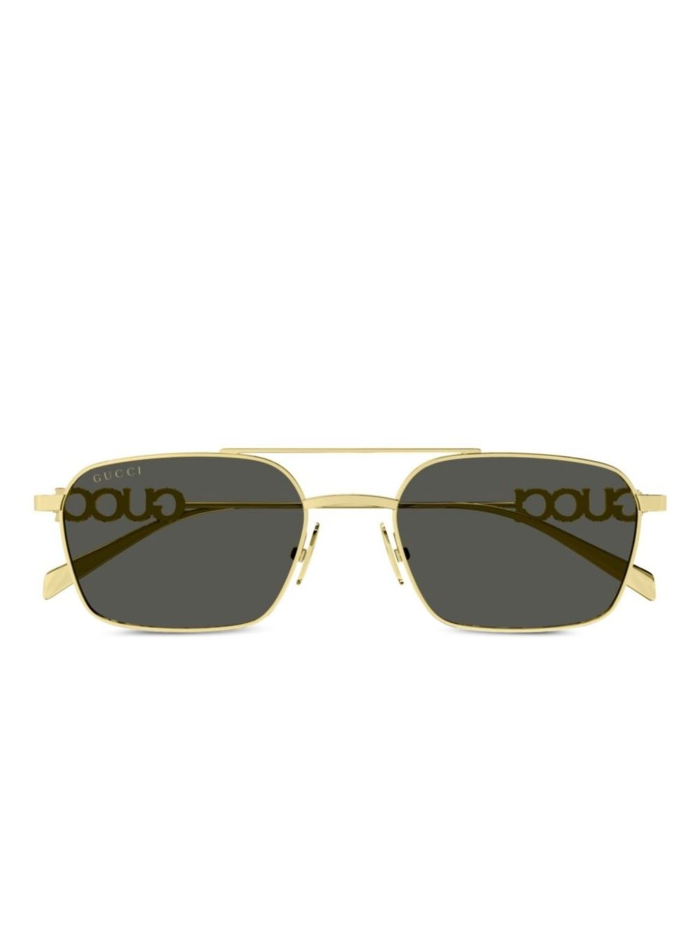 navigator-frame sunglasses Highlights - Gold-tone - Nose pads - Logo plaque at the arm - These glasses come with a protective case. Imported Composition Metal 100% SIZE & FIT Measurement Arm Length 5.7 in(14.5 cm) Bridge Width 0.74 in(1.9 cm) Lens Diameter 1.96 in(5 cm)