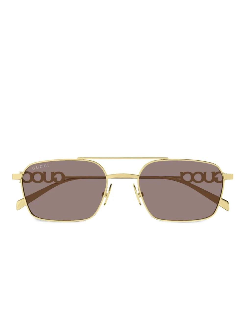 navigator-frame sunglasses Highlights - Gold-tone - Nose pads - Logo plaque at the arm - These glasses come with a protective case. Imported Composition Metal 100% SIZE & FIT Measurement Arm Length 5.7 in(14.5 cm) Bridge Width 0.74 in(1.9 cm) Lens Diameter 2.12 in(5.4 cm)