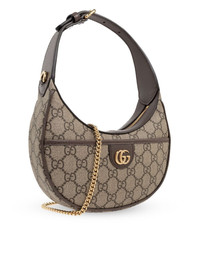 Ophidia GG super mini shoulder bag Highlights - Brown/beige - Canvas/leather - Gg supreme canvas - Single adjustable top handle - Signature double g logo - Gold-tone hardware - Top zip fastening - Detachable chain-link shoulder strap - Main compartment Made in Italy Composition Outer: Polyurethane 100%, Canvas 100%, Calf Leather 100% SIZE & FIT Measurement DEPTH 1.57 in(4 cm) HEIGHT 5.7 in(14.5 cm) STRAP 39.37 in(100 cm) WIDTH 7.87 in(20 cm)