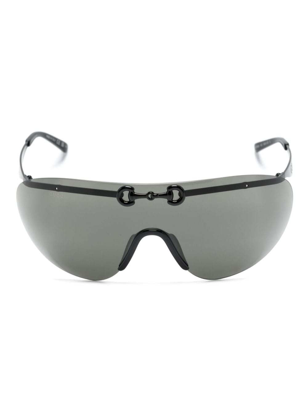 oversize-frame sunglasses Highlights - Black - Metal - Signature horsebit detail - Rimless lenses - Oversize frame - Grey tinted lenses - Logo-engraved arm - Curved tips - These glasses come with a protective case. Made in Italy Composition Metal 100% SIZE & FIT Measurement Arm Length 4.92 in(12.5 cm) Bridge Width 0.39 in(1 cm) Lens Diameter 3.89 in(9.9 cm) WIDTH 5.51 in(14 cm)