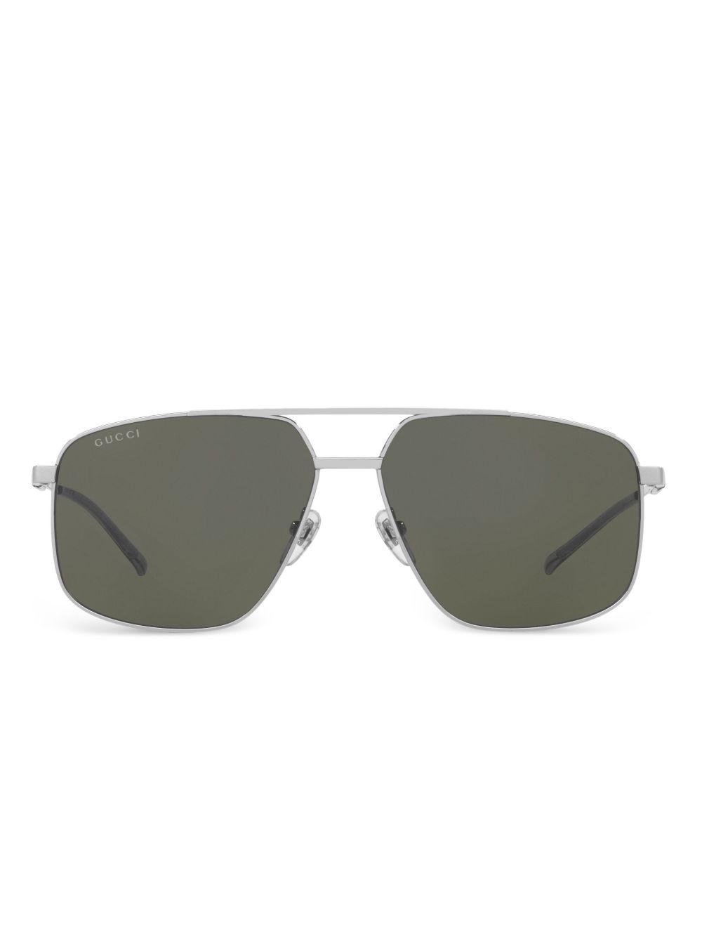 oversize-frame sunglasses Highlights - Silver-tone - Oversize frame - Double bridge - Nose pads - Straight arms - These glasses come with a protective case. Made in United States Composition Metal 100% SIZE & FIT Measurement Arm Length 5.7 in(14.5 cm) Bridge Width 0.55 in(1.4 cm) Lens Diameter 2.36 in(6 cm)