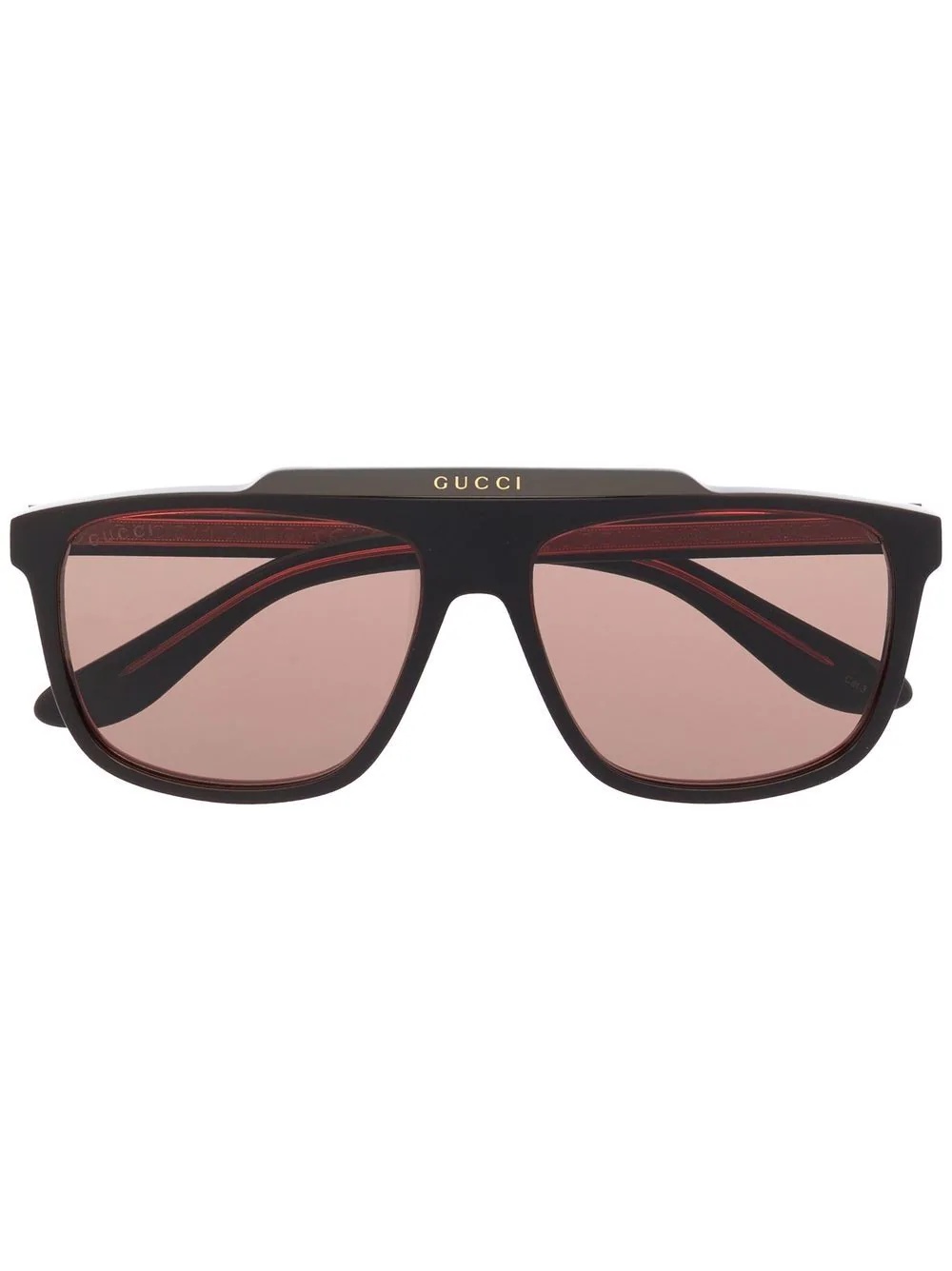 pilot-frame sunglasses wine red pilot frame red tinted lenses straight arms gold-tone logo lettering curved tips Made in Italy Composition Acetate 100% SIZE & FIT Measurement Arm Length 5.7 in(14.5 cm) Bridge Width 0.62 in(1.6 cm) Lens Diameter 2.28 in(5.8 cm) Total Width 5.9 in(15 cm)