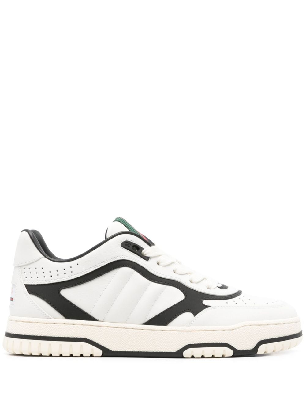 Re-Web sneakers Highlights - White/black - Calf leather - Grained texture - Panelled design - Front lace-up fastening - Logo patch to the rear - Padded ankle - Perforated detailing - Signature web detailing - Perforated toebox - Quilted panels - Round toe - Branded leather insole - Rubber sole - This piece comes complete with a protective dust bag. - Women's gucci sneakers fit large. for the most comfortable fit please select half a size down. Made in Italy Composition Leather 100% SIZE & FIT Measurement HEEL 1.18 in(3 cm) Sole height 0.98 in(2.5 cm)
