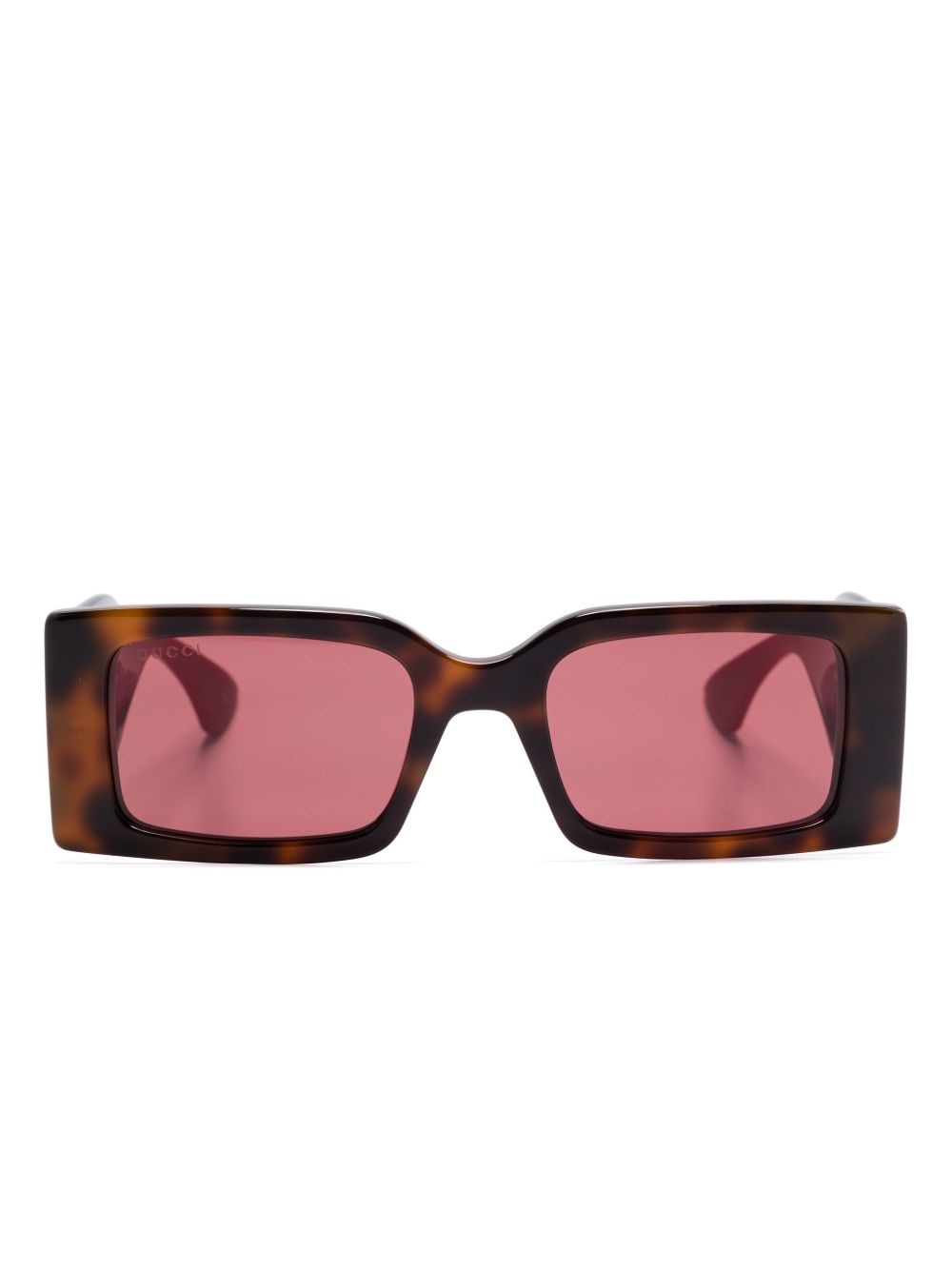 rectangular-frame sunglasses Highlights - Walnut brown - Nose pads - Curved tips - Gold-tone logo lettering - These glasses come with a protective case. Imported Composition Acetate 100% SIZE & FIT Measurement Arm Length 5.31 in(13.5 cm) Bridge Width 0.78 in(2 cm) Lens Diameter 2.04 in(5.2 cm) Total Width 5.55 in(14.1 cm)