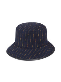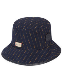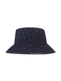 reversible GG and Horsebit bucket hat The original GG canvas and Horsebit emblem are the contrasting elements of this reversible bucket hat. The signature appears in beige and blue GG canvas with the navy Horsebit striped wool on the other side. Made in Italy Composition Wool 100%, Calf Leather 100%, Polyester 68%, Cotton 16%, Polyamide 16% SIZE & FIT Measurement BRIM 2.75 in(7 cm) CIRCUMFERENCE 23.62 in(60 cm)