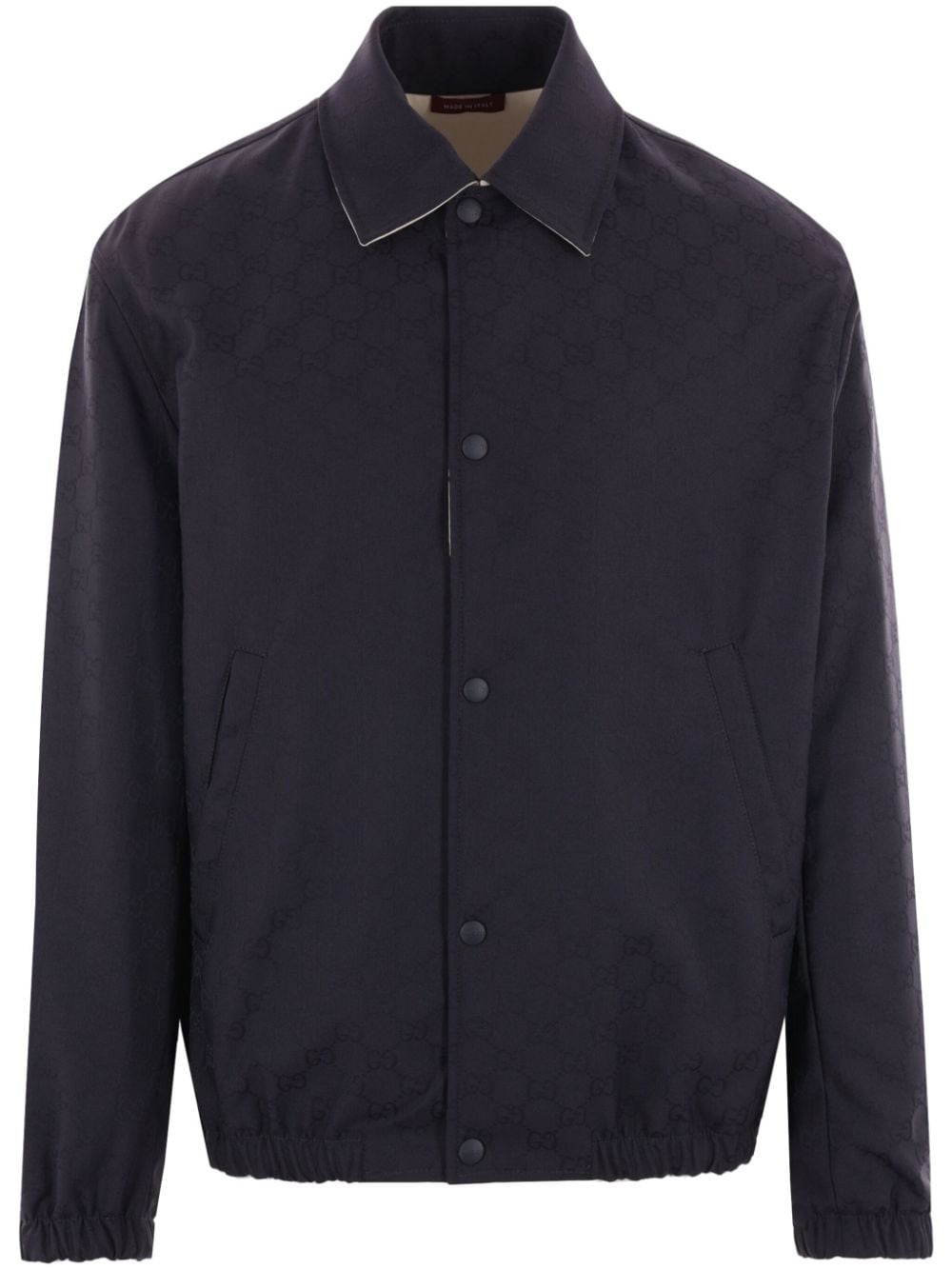 reversible zipped jacket Highlights - Blue/white - Cotton - Reversible - Classic gg canvas - Embossed logo to the front - Zip fastening - Elasticated cuffs - Elasticated waistband Made in Italy Composition Outer: Cotton 100%, Polyester 100% Lining: Cotton 100%, Polyester 100%