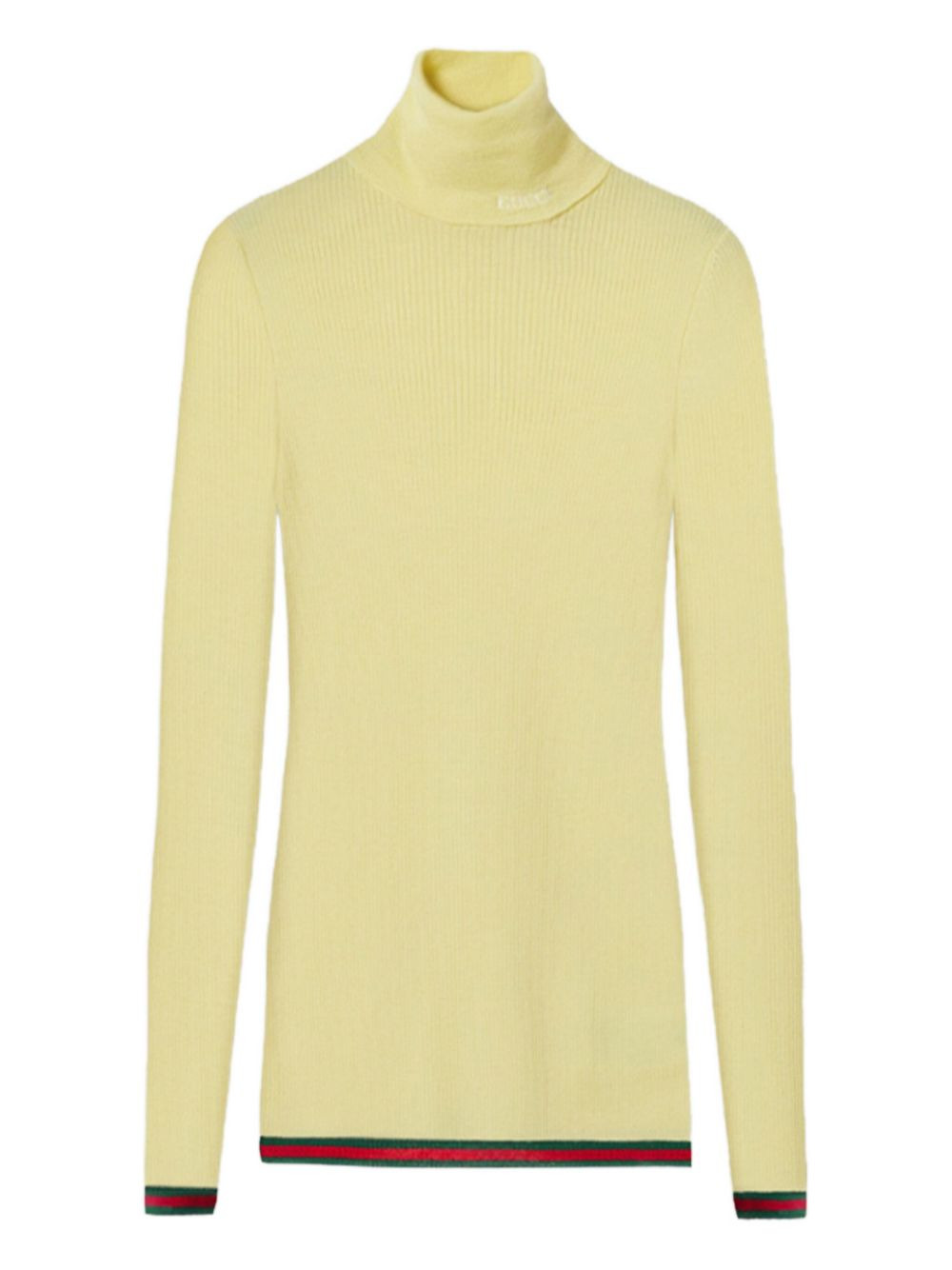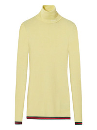 ribbed-knit turtleneck top Highlights - Yellow - Ribbed knit - Turtleneck - Long sleeves - Hem detail Made in Italy Composition Viscose 83%, Cashmere 70%, Silk 30%, Polyester 17% SIZE & FIT FittingInformation Designed for a close fit throughout Made with a midweight knit, this piece offers some stretch Washing instructions Read Manufacturer Guidelines