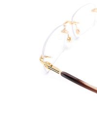 rimless optical glasses gold-tone acetate rimless clear lenses nose pads logo-engraved arm curved tips straight arms These glasses come with a protective case. All glasses from FARFETCH are sold as non-prescription frames. Made in Italy Composition Acetate 100% SIZE & FIT Measurement Arm Length 5.51 in(14 cm) Bridge Width 0.62 in(1.6 cm) Lens Diameter 2.2 in(5.6 cm) Total Width 5.51 in(14 cm)