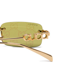 rimless sunglasses Highlights - Gold-tone - Nose pads - Curved tips - Gold-tone logo lettering - These glasses come with a protective case. Imported Composition Metal 100% SIZE & FIT Measurement Arm Length 5.7 in(14.5 cm) Bridge Width 0.78 in(2 cm) Lens Diameter 2.04 in(5.2 cm) Total Width 5.51 in(14 cm)