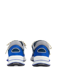 Run lace-up sneakers Crafted from suede and enriched with a bi-colour rubber sole, these Gucci Run sneakers are inspired by the sporting world. The panelled design is finished with an Interlocking G logo for a subtle branding detail. Highlights - Sky blue/light grey/black - Suede - Panelled design - Mesh panelling - Logo-embroidered tongue - Logo patch to the side - Round toe - Front lace-up fastening - Branded insole - Chunky rubber sole Made in Italy Composition Sole: Rubber 100% Lining: Fabric 100% Outer: Suede 100% SIZE & FIT Measurement HEEL 1.18 in(3 cm) Sole height 0.98 in(2.5 cm)