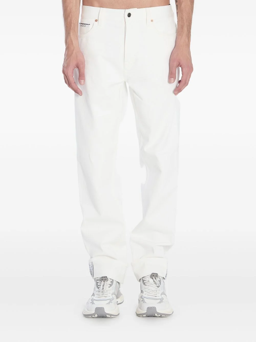 selvedge cotton jeans Highlights - White - Cotton construction - Logo tab - Straight leg - Button fly - Five-pocket Made in Italy Composition Cotton 100% Washing instructions Read Manufacturer Guidelines