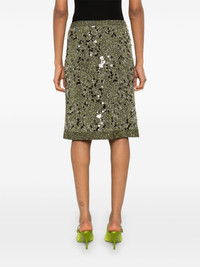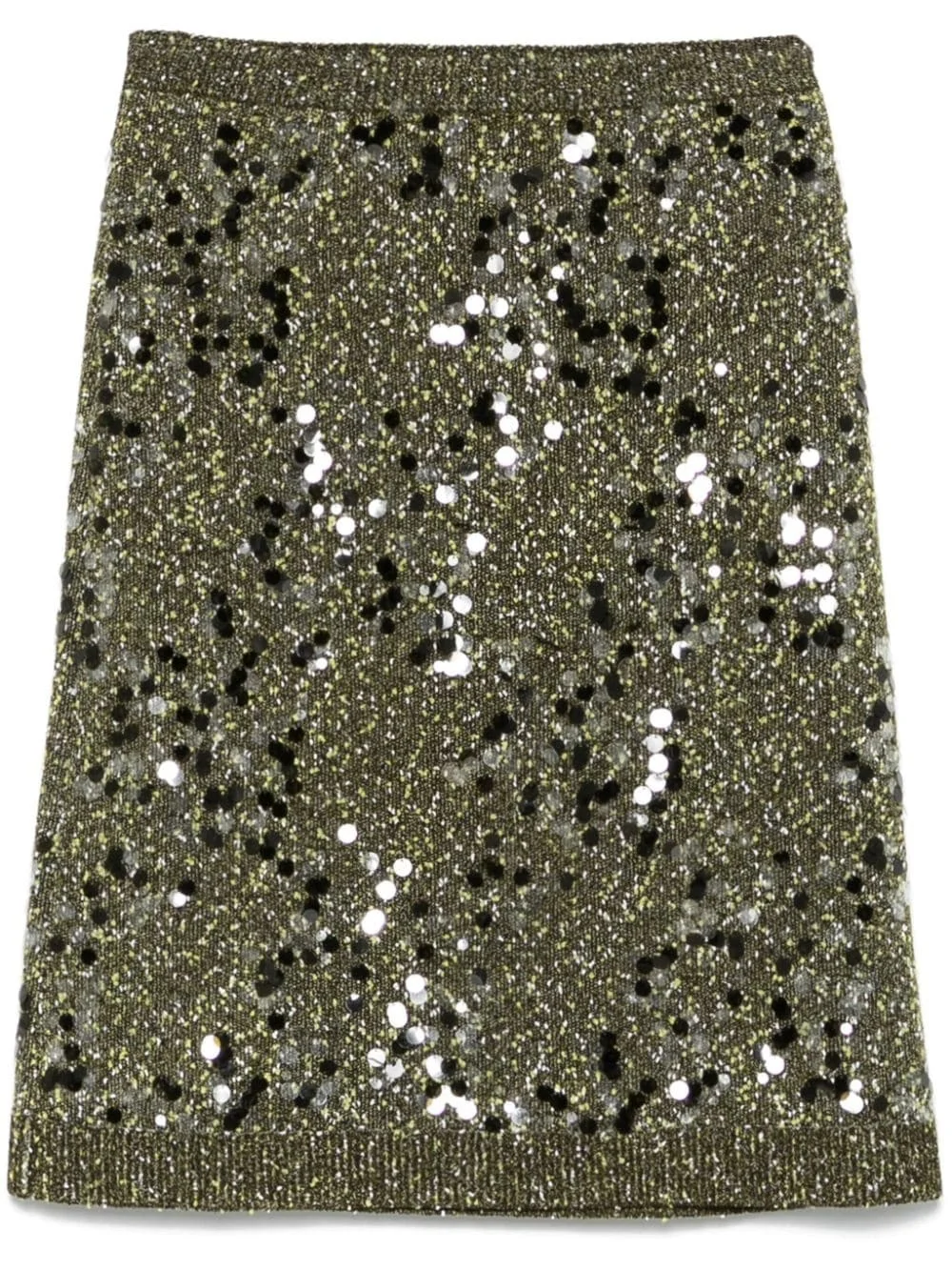 sequin-embellished mini skirt Highlights - Moss green - Knitted construction - Boucle construction - Sequin embellishment - Elasticated waistband - Ribbed hem - Above-knee length Made in Italy Composition Polyester 100%, Viscose 51%, Polyamide 30%, Wool 18%, Spandex/Elastane 1% Washing instructions Dry Clean Only